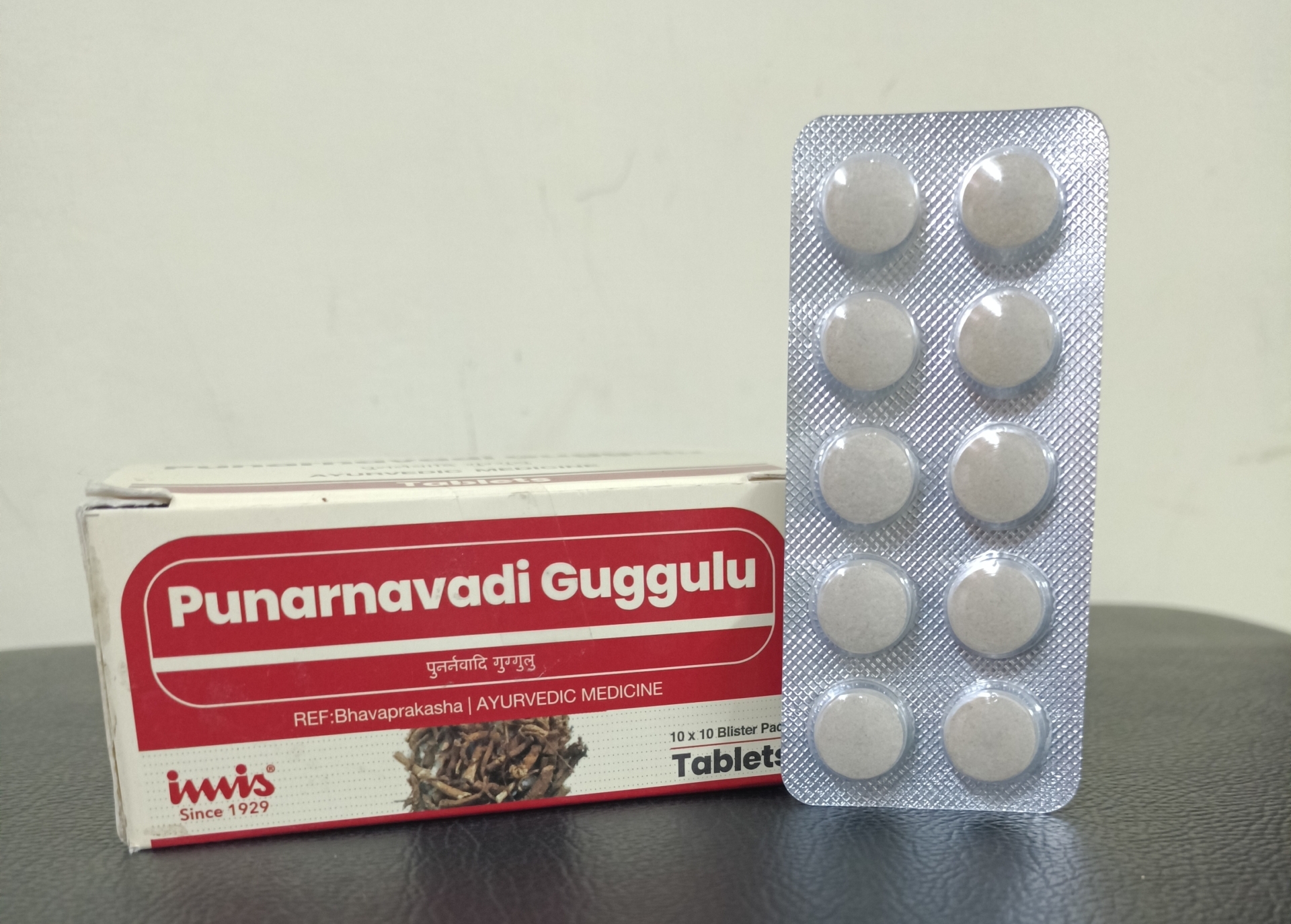Punarnavadi Guggulu is an Ayurvedic formulation known for its anti-inflammatory, diuretic, and detoxifying properties, making it effective for various health conditions such as gout, sciatica, and fluid retention.